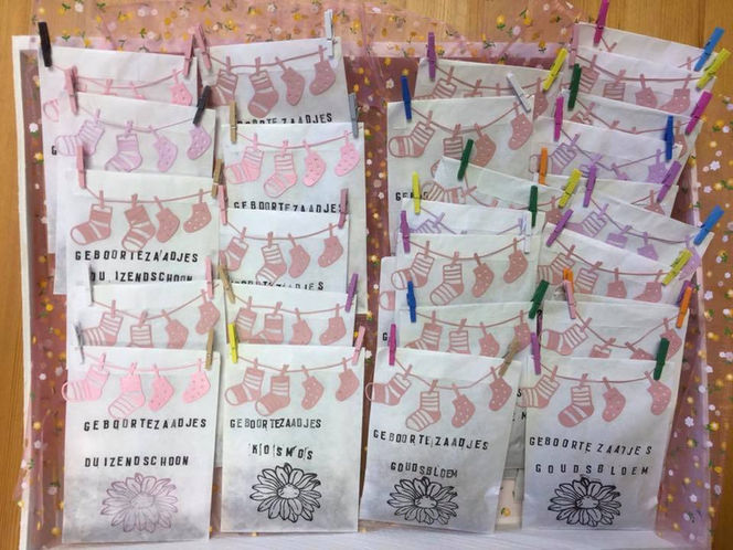 Hieronder enkele voorbeelden en foto's van het creatieve "atelierwerk" van geboorte- en huwelijkszaadjes.